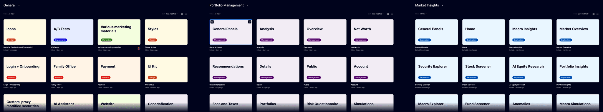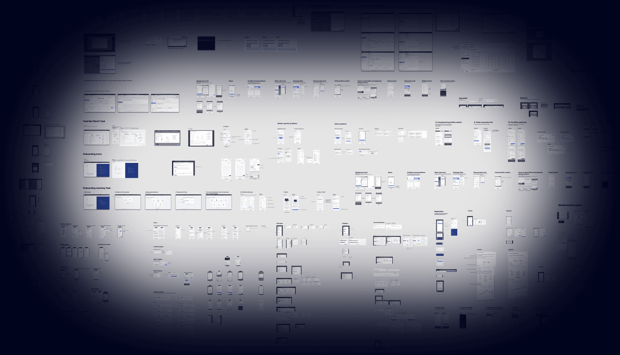 All mockups were in complete disarray. Some were grouped, and some weren't. Many features had several versions that needed to be sorted by which was the latest and whether it was implemented. Also, mockups were mixed with drafts.