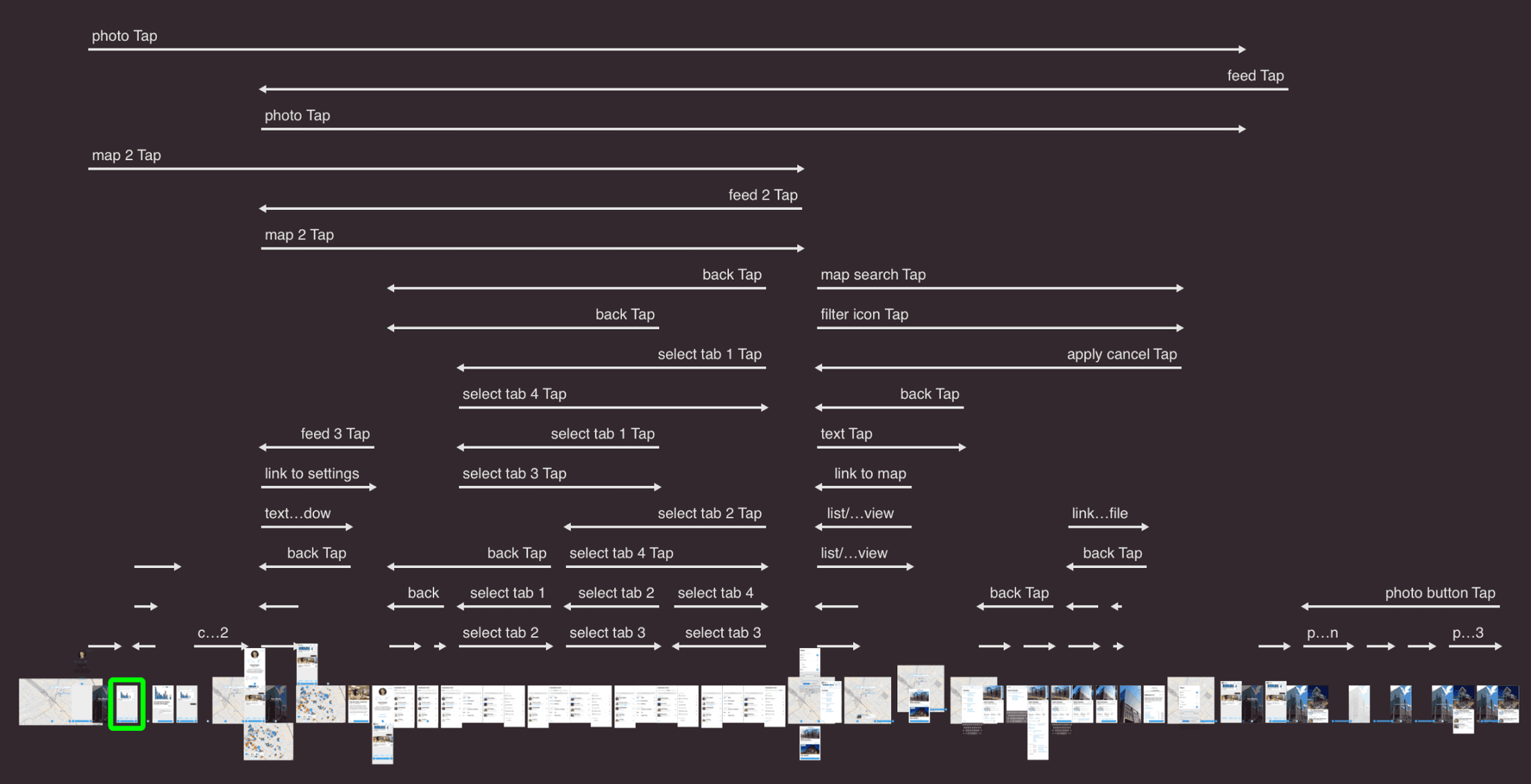I started from a birds-eye view of the product. The starting point became Snapchat-inspired swipe navigation.