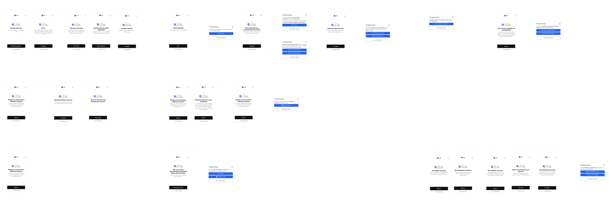 First, I checked all possible errors, selected those a user could influence, and structured them. Then, I created a group of modals customized for every problem.