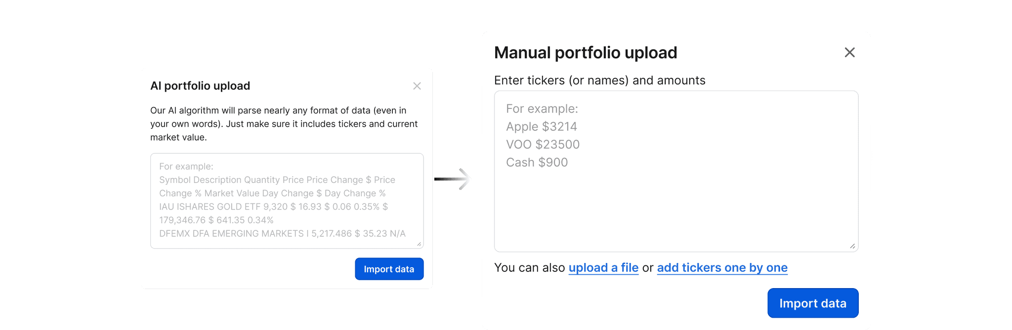 Improve the manual portfolio upload