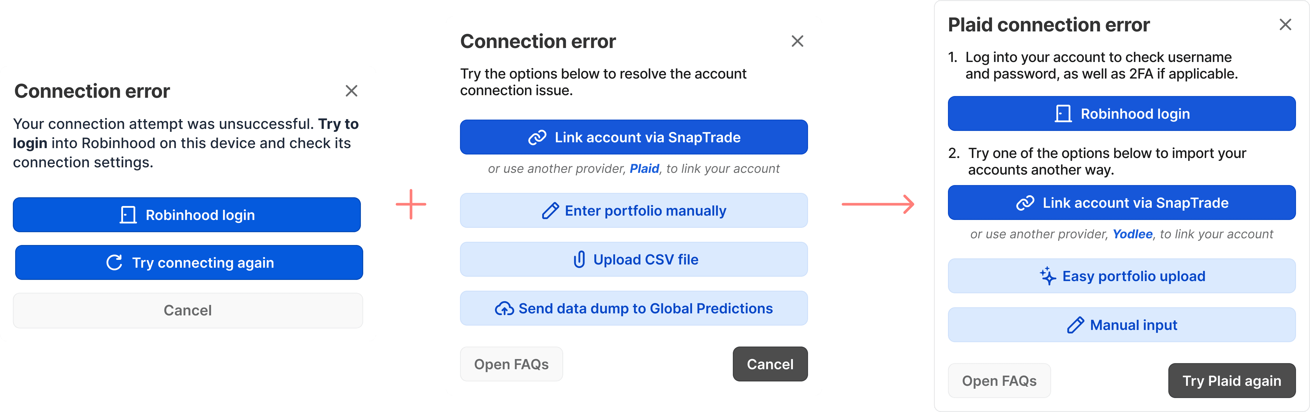 Meanwhile, the portfolio connection success rate was terrible. The probability of a successful connection was less than 50%. Considering an average user has three accounts, a connection failure was guaranteed, as was users’ disappointment, incredulity, and frustration.
